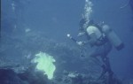 Sonny had been told about a giant clam [Tridacna gigas], an endangered species, living on one of the coral heads in a nearby lagoon. On April 6, 1967, she planned to photograph the shell while on a dive trip but when her dive party arrived at the coral head, they discovered the shell lying on its side, dead. Greatly disappointed, they took pictures and that is when Sonny decided she wanted to collect the shell, a huge undertaking! The Giant Clam was located in 20 feet of water, so wearing scuba gear and utilizing air bags, they lifted the shell to the surface of the water. It took four people to lift the shell into their boat. Sonny was the proud owner of a very large Killer Clam, Sonny’s nickname for her new giant shell!