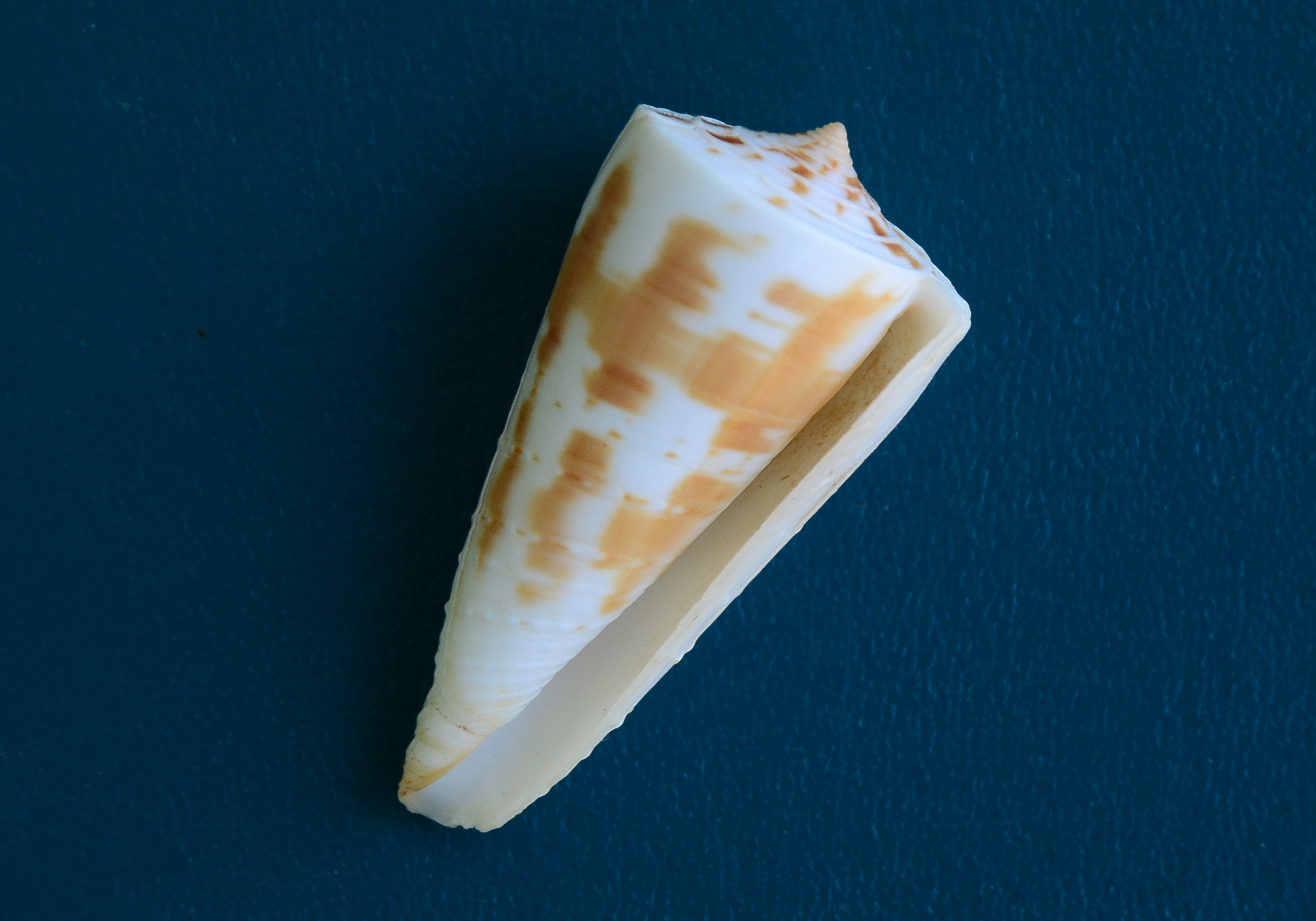 It is reported that specimens grow to 70mm to 100mm and larger but they don’t seem to grow that large anymore. The only specimen listed on eBay at this moment is a meager 47mm. Specimens of Conus tribblei are difficult to acquire. The few specimens that reach the market come from the Philippines or Taiwan. Our specimen is a choice one, about as near to gem in grade as a cone can be and has a natural lip. Donated by Richard Kent.