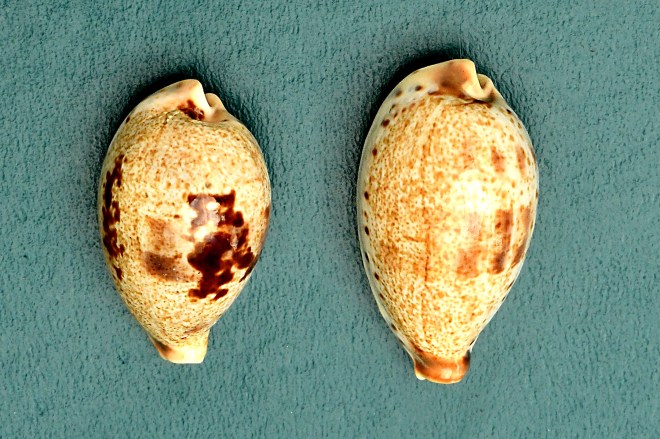 Originally the north-western Indian Ocean variety, Cypraea pericalles (Melvill & Standen, 1904) was a distinct specie, separate from the more common Pacific one, but recently Cypraea pericalles has been downgraded into a subspecies. When the names were first described there was a gap in the range, but this was due to the nonexistence of shelling in Burma and Thailand. Specimens that come from the Andaman Sea (this area) often appear to be an intermediate of the two, but are usually sold as pericalles. The difference is that the original pericalles has shorter teeth, is less callus, and is of smaller average size, with a less pronounced blotch. Possibly the two subspecies fully intergrade.
