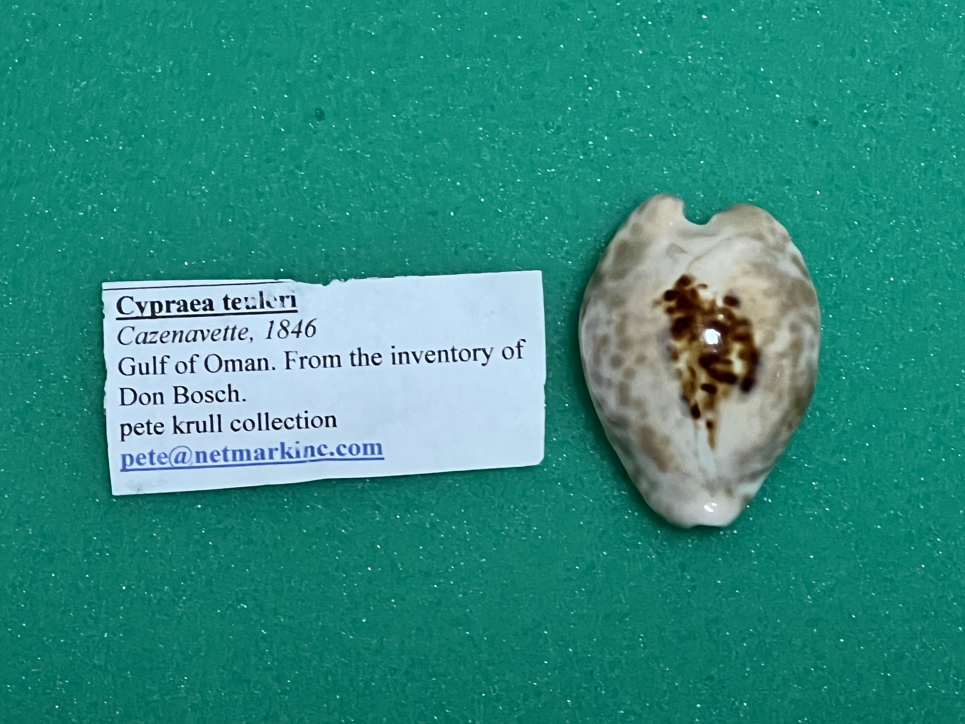 When Burgess published his then definitive book on cypraea I’m 1970 he wrote that Cypraea tuelerei was one of the “great rarities” and that specimens were only know from museums. And then came Donald Bosch and family doing research on the Gulf of Oman who stumbled on not one but hundreds of specimens. Tuelerei has one of the most restricted distribution of all cowries, found only off of a few small islands in the Gulf of Oman. With a habitat of shall water along the shore it was easy to collect and was eventually collected to near extinction. Somewhere along the line the Sultanate banned all marine collection. Today occasional fresh specimens still reach the market. Prices fave from a low of $20 to $60 and even higher asking prices.
