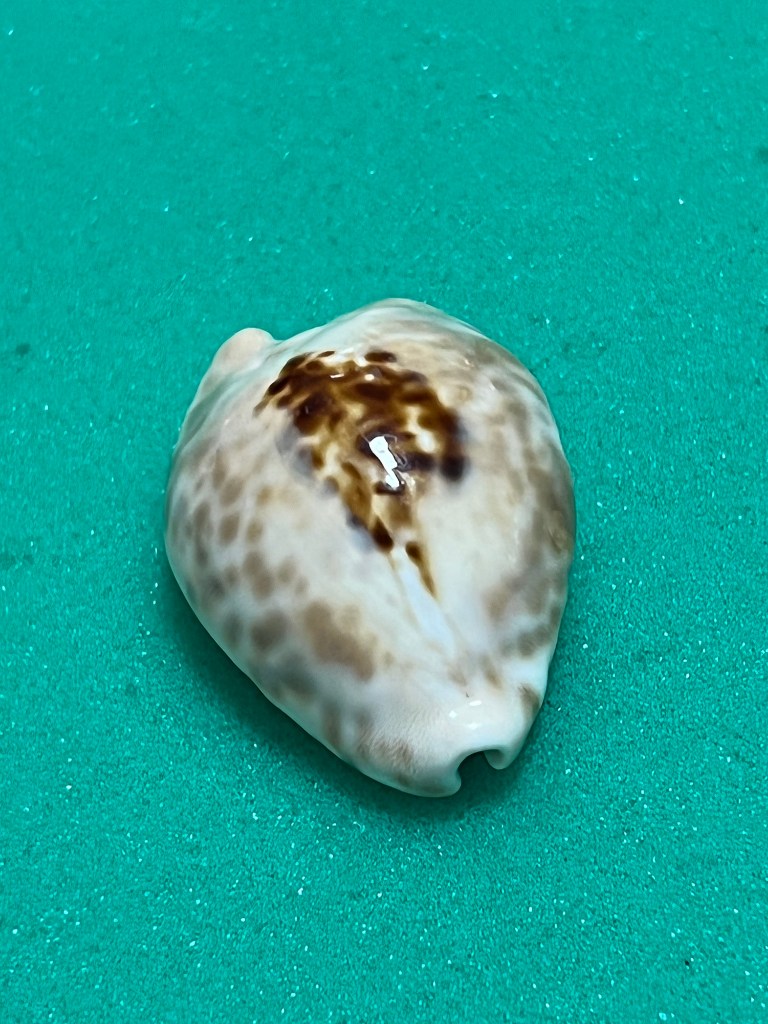 Cypraea tuelerei is distinctive and can no be mistaken for any other. It is solid and heavy for its size. Rather than smooth curves found in cowries, it has somewhat angular bends to define the shape. The tech are very weak. It is light beige in color with two distinctive blotched on the dorsum that meet at the top, superheated by a narrow line caused the the mantle. size ranges from 30-60mm with most specimens right in the middle. The blotches are variable in size and color which makes for an interesting series. Its nearest relative is Cypraes fultonti which is indeed a great deep water rarity.