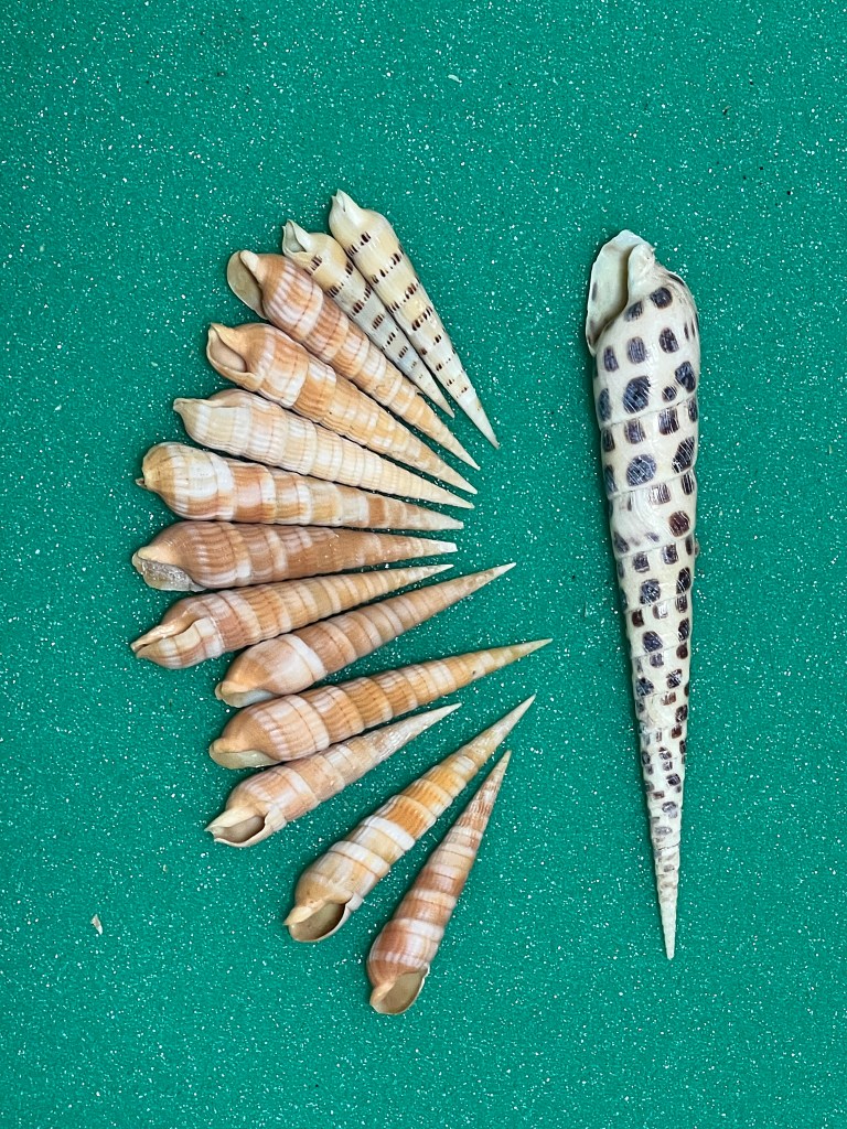When shelling in Florida waters, keep an eye open, we have augers here, though all are bland whitish in color.