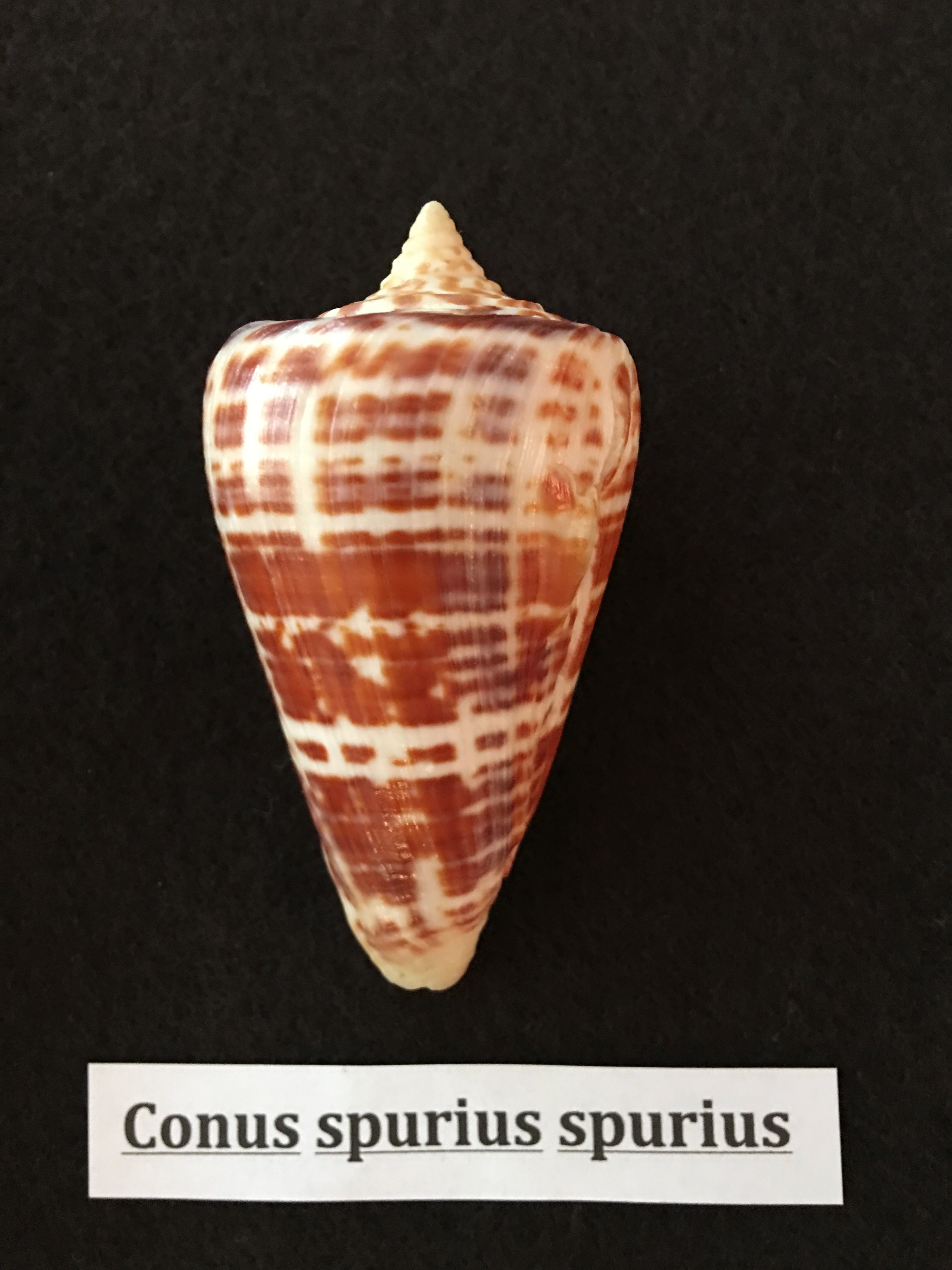 *132. Conus spurius spurius w/data, beautiful color form, large shell, Bahamas, Opening Bid: $50.00