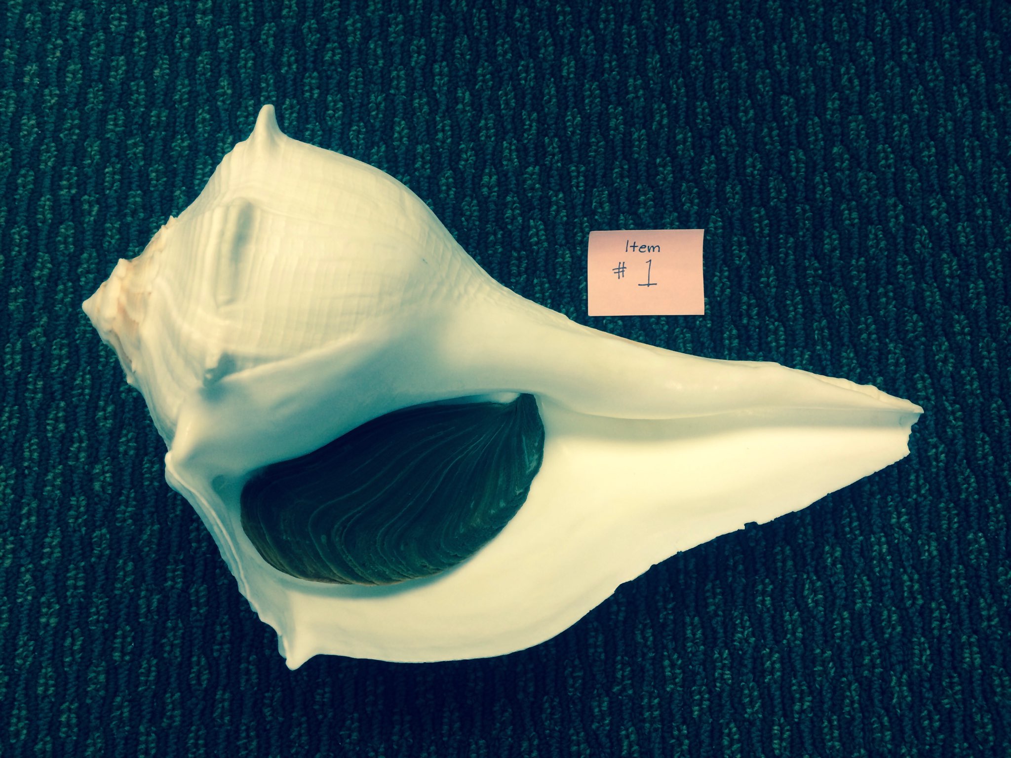 *1. Busycon contrarium w/data, Florida. Our Club Shell! A gorgeous 12” specimen! Opening Bid $35.00