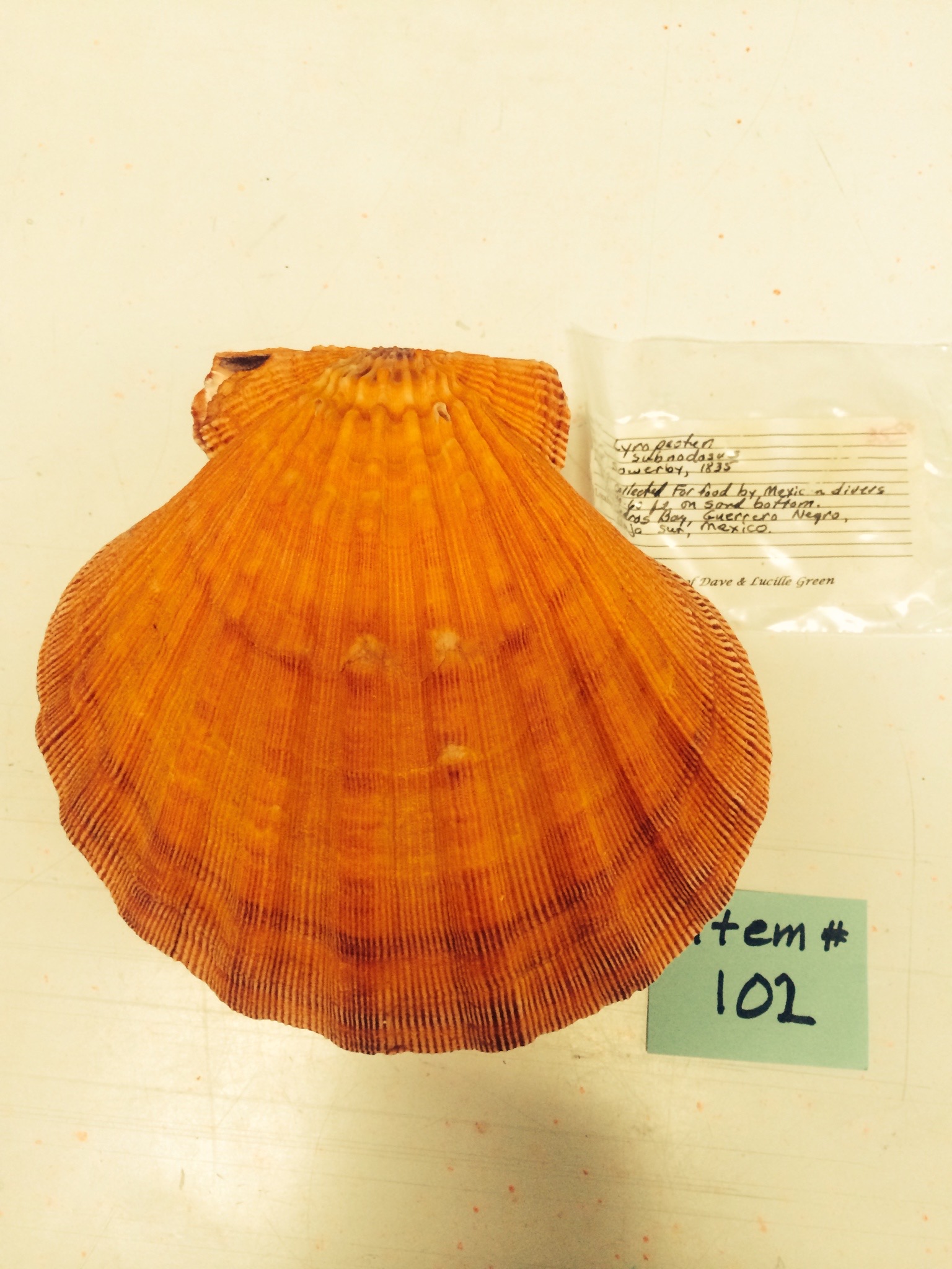 76 Nodipecten fragosus w/data, Panama City Beach, Florida, “Lion’s Paw”!